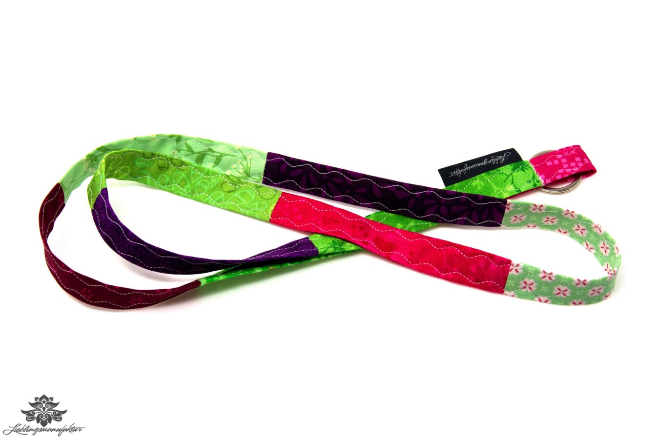 Hochwertiges, robustes Patchwork-Schlüsselband in einmaligem Design aus 100% Baumwolle – mit Schlüsselring.