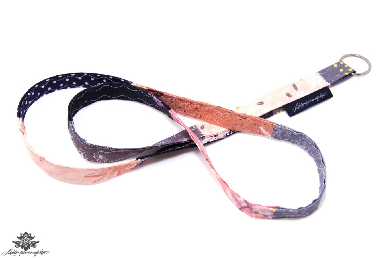 Hochwertiges, robustes Patchwork-Schlüsselband in einmaligem Design aus 100% Baumwolle – mit Schlüsselring.