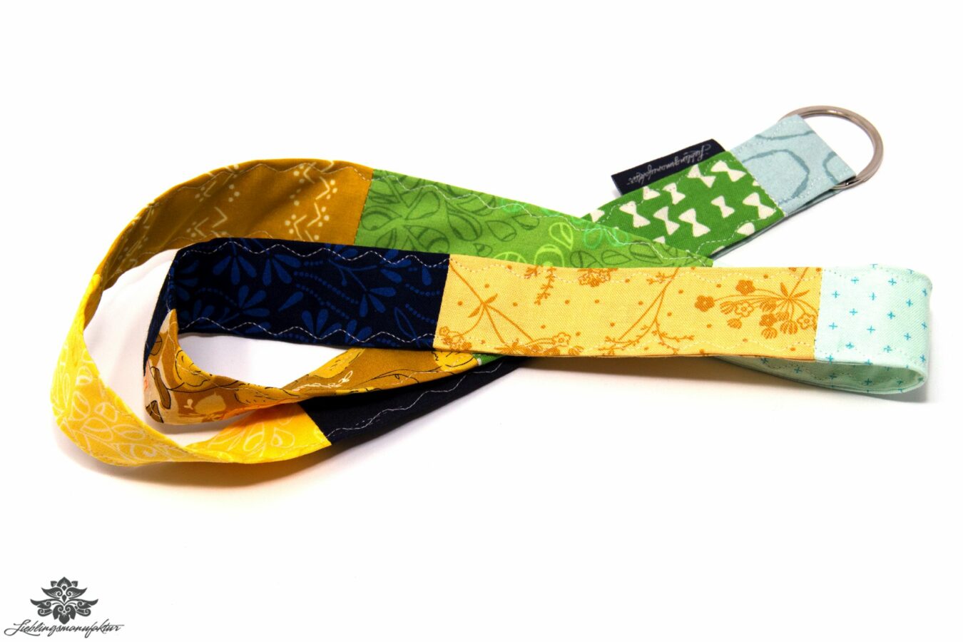 Hochwertiges, robustes Patchwork-Schlüsselband in einmaligem Design aus 100% Baumwolle – mit Schlüsselring.
