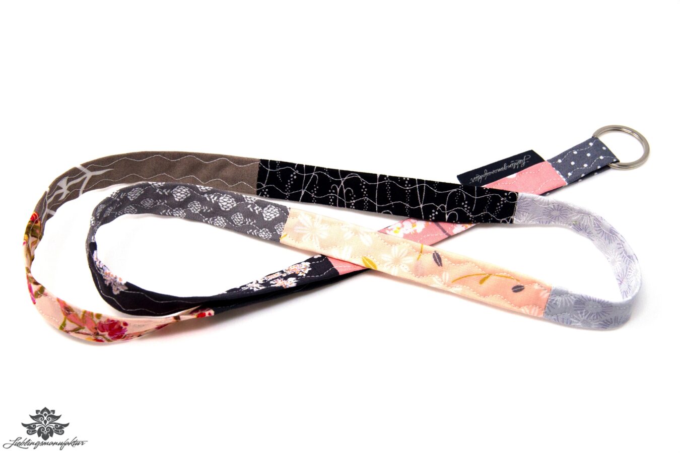 Hochwertiges, robustes Patchwork-Schlüsselband in einmaligem Design aus 100% Baumwolle – mit Schlüsselring.