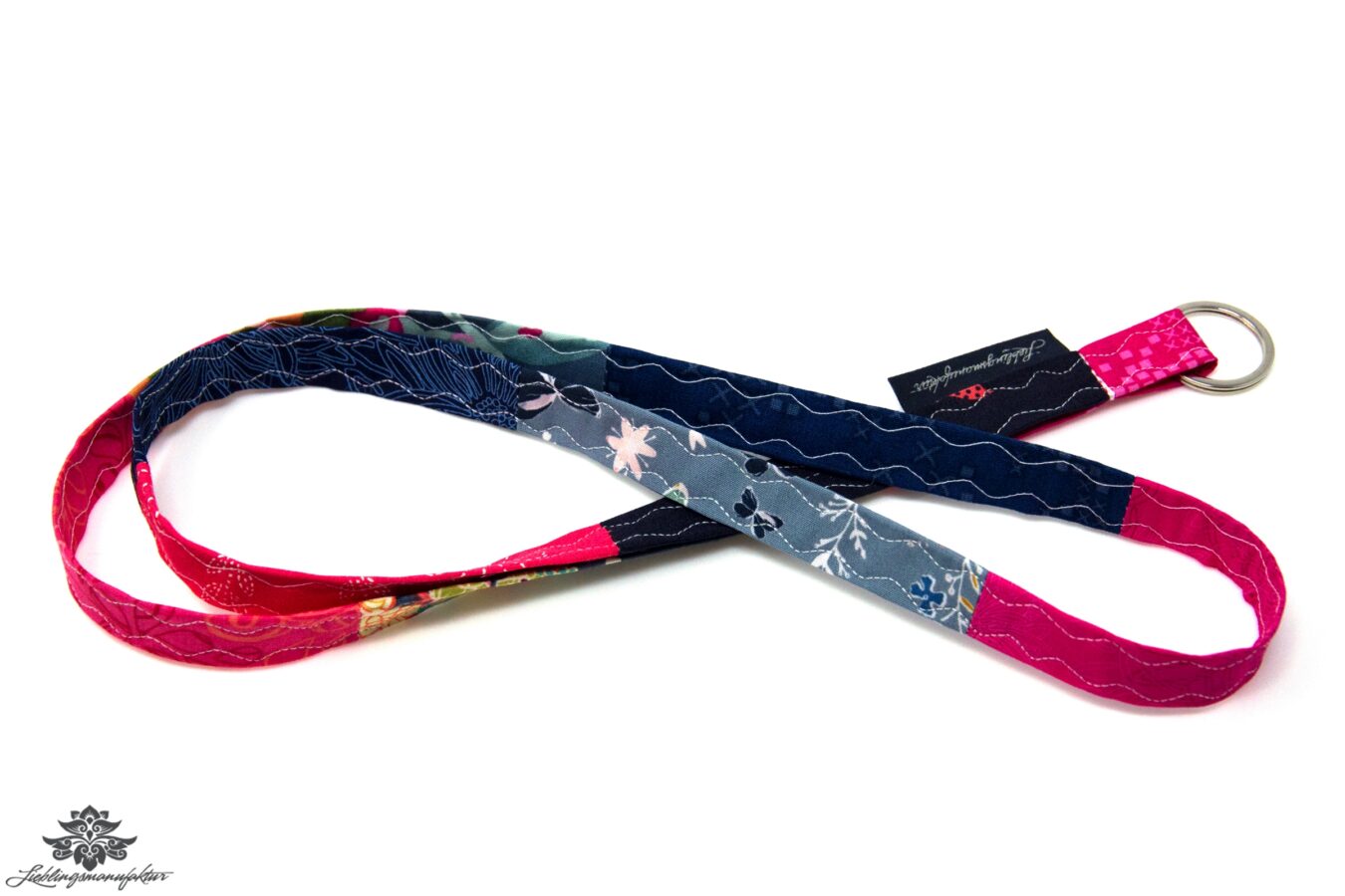 Hochwertiges, robustes Patchwork-Schlüsselband in einmaligem Design aus 100% Baumwolle – mit Schlüsselring.