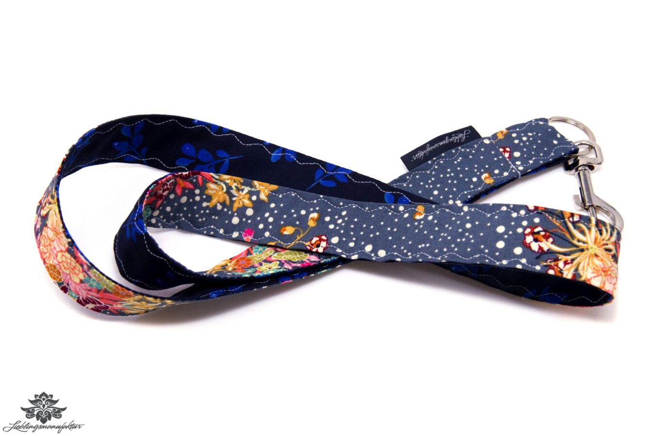 Hochwertiges, robustes Schlüsselband in buntem Design aus zwei verschiedenen Stoffen (100% Baumwolle) – mit Schlüsselring und Karabinerhaken.