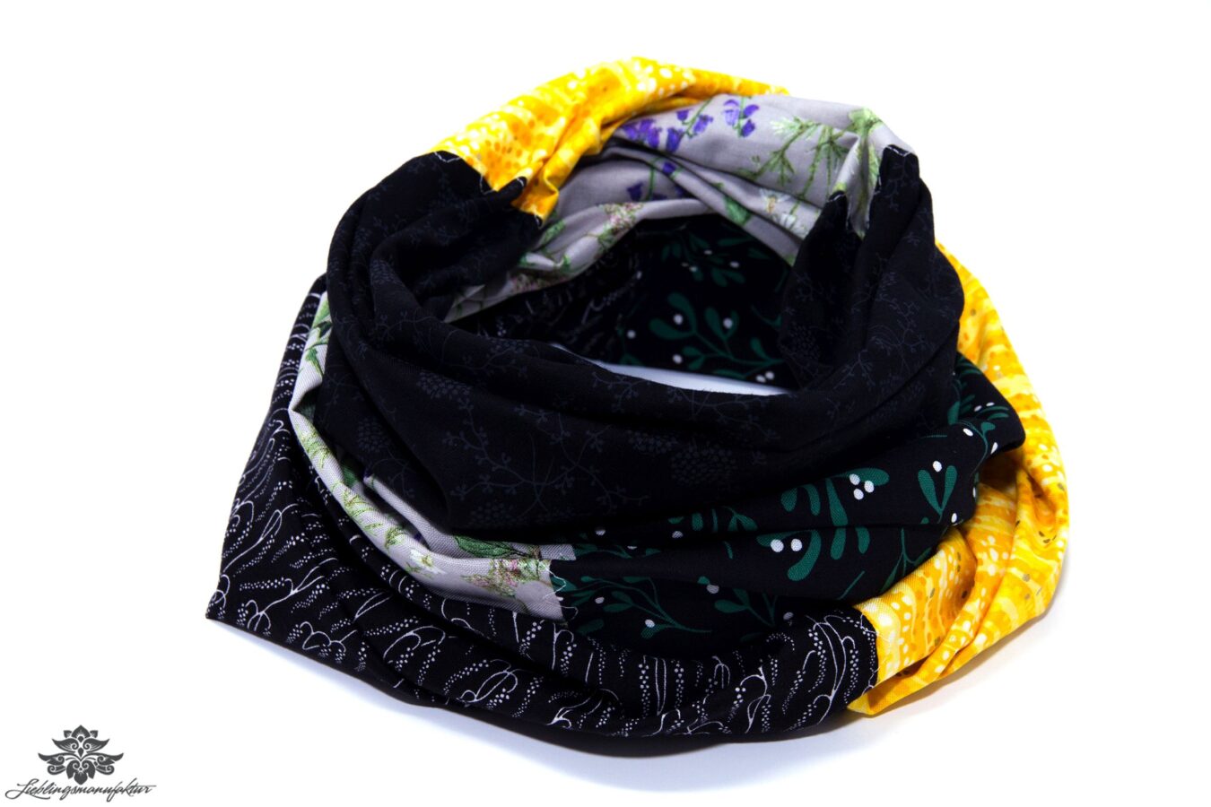Loop Schal Tuch gelb grau schwarz | Patchwork Designer Tuch