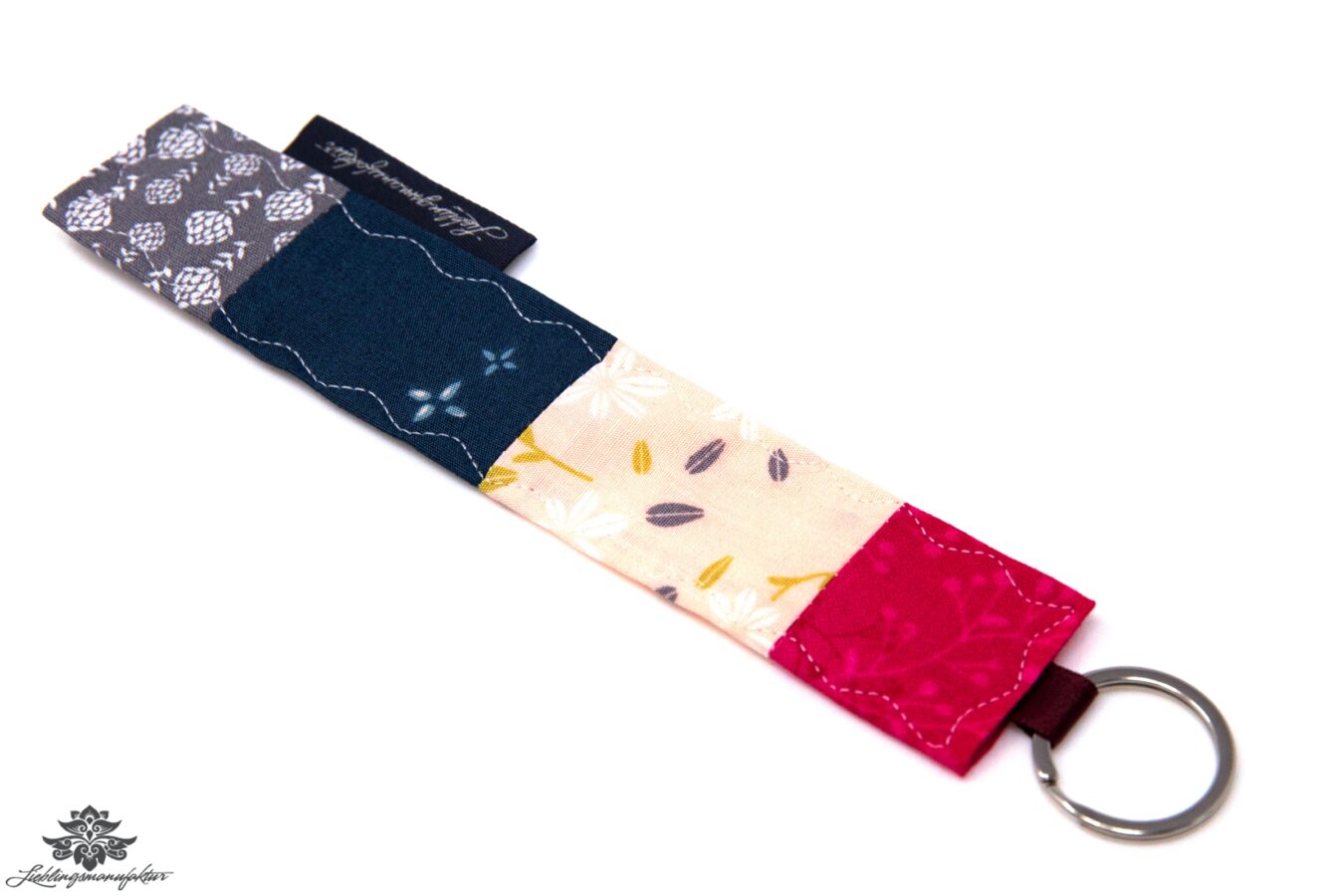 Ein ausgefallener schöner Schlüsselanhänger könnte helfen: Hochwertiger, robuster Patchwork-Schlüsselanhänger in einmalig buntem Mustermix-Design aus 100% Baumwolle – mit Schlüsselring.