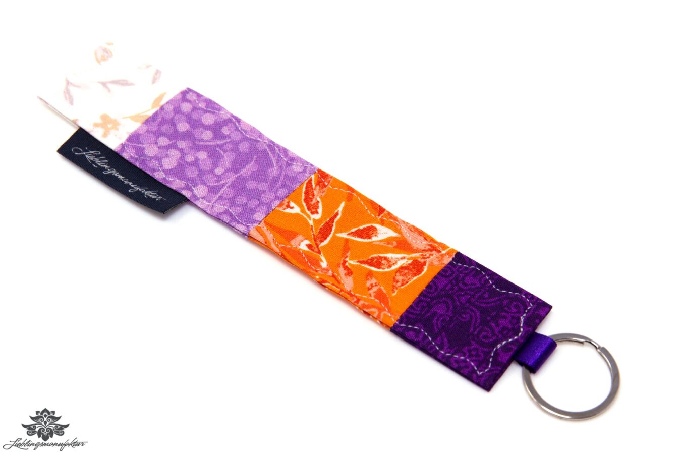 Hochwertiger, robuster Patchwork-Schlüsselanhänger in einmalig buntem Mustermix-Design aus 100% Baumwolle – mit Schlüsselring.