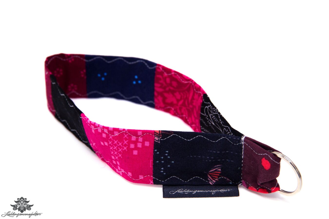 Hochwertiges, robustes Patchwork-Schlüsselband für Arm & Handgelenk in blau-pink