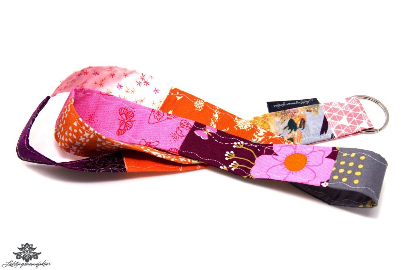 Band für Schlüssel Patchwork Schlüsselband / Schlüsselband Ausweishalter rosa grau orange
