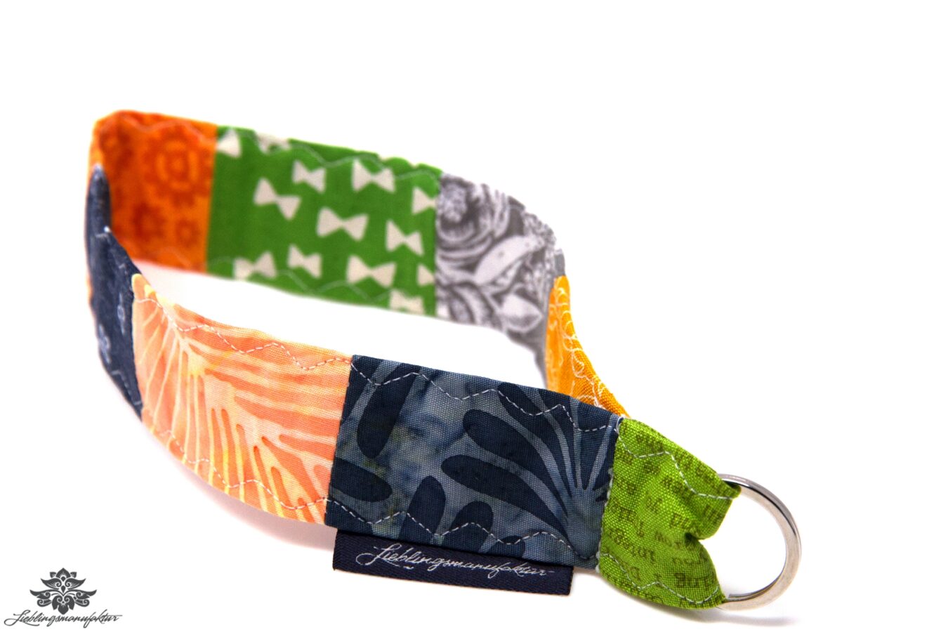 Hochwertiges, robustes Patchwork-Schlüsselband grün grau