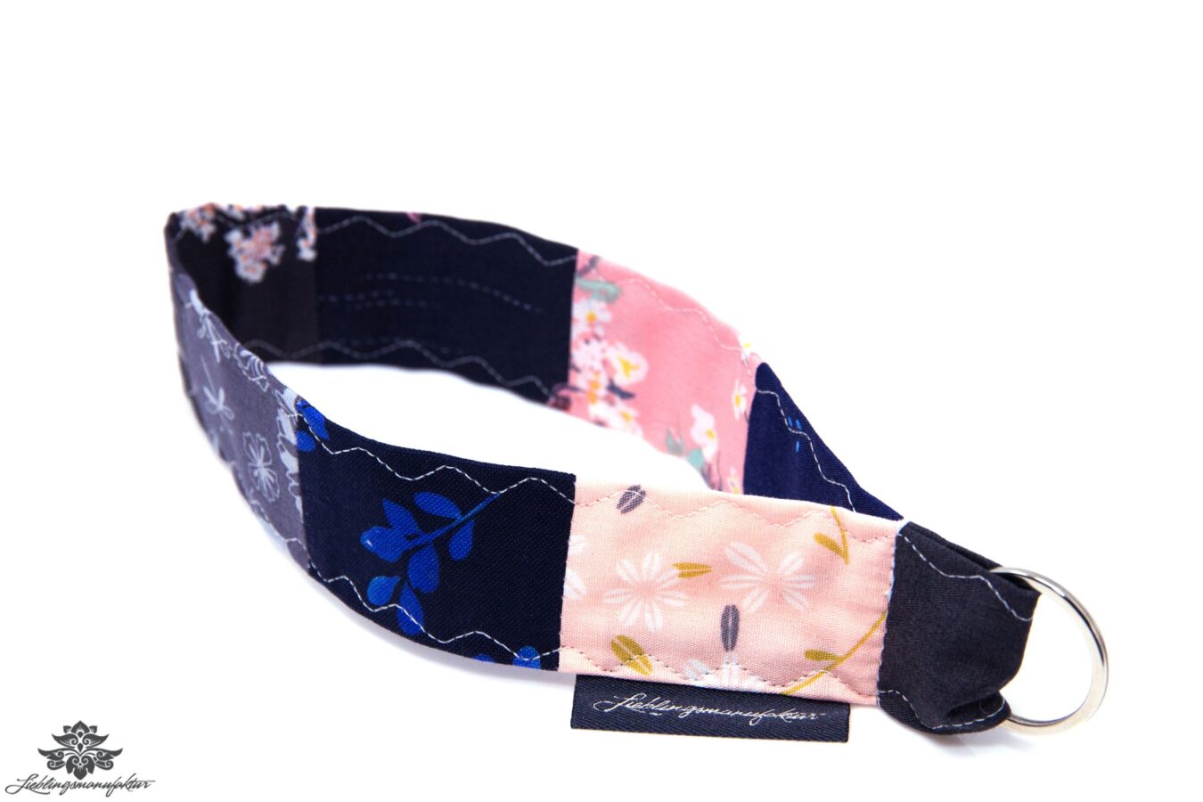 Schlüsselband kurz blau rosa grau: Hochwertiges, robustes Patchwork-Schlüsselband in einmaligem Design aus 100% Baumwolle – mit Schlüsselring.