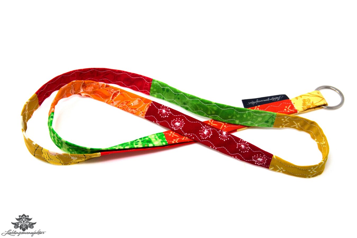 Hochwertiges, robustes Patchwork-Schlüsselband in einmaligem Design aus 100% Baumwolle – mit Schlüsselring.