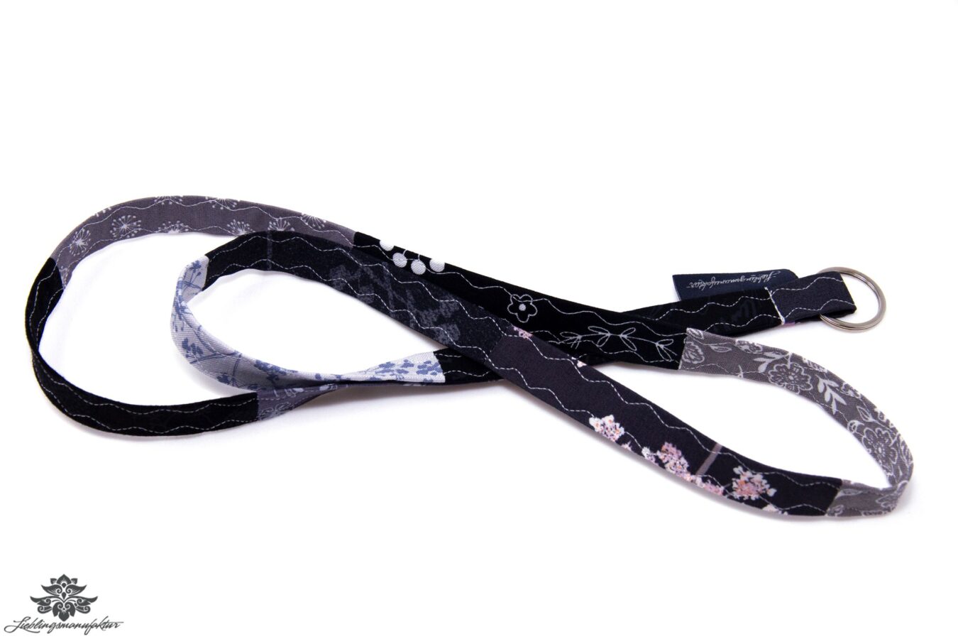 Schlüsselband schwarz grau: Patchwork-Schlüsselband