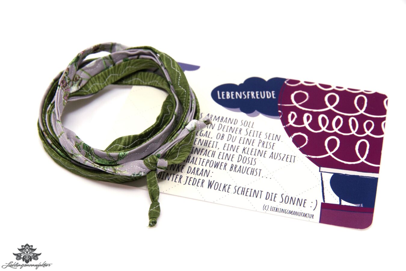 Lebensfrohes buntes Armband – aus zwei verschiedenen Stoffen (100% Baumwolle). Es zaubert ein Lächeln aufs Gesicht und macht manch grauen Tag für einen Moment vergessen. Es erreicht Dich befestigt auf einem Kärtchen mit guten Wünschen im Postkartenformat. So kannst Du es direkt als Geschenk für Deine beste Freundin verwenden.