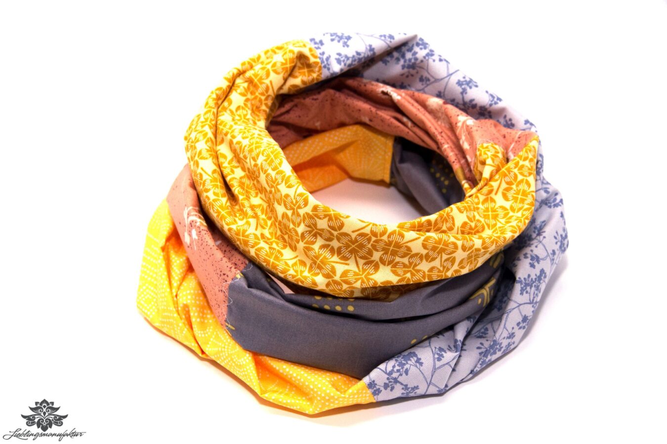 Hochwertiger, farbenfroher Patchwork-Loop-Schal im einmaligen Design aus 100% Baumwolle. Jeder Schal ist einzigartig. Es kommen immer andere Baumwollstoffe zum Einsatz , so ist jeder Loop-Schal aus der Lieblingsmanufaktur ein absolutes Einzelstück.