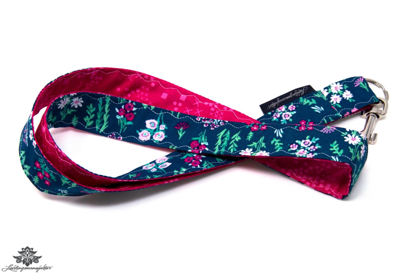 Hochwertiges, robustes Schlüsselband in buntem Design aus zwei verschiedenen Stoffen (100% Baumwolle) – mit Schlüsselring und Karabinerhaken.