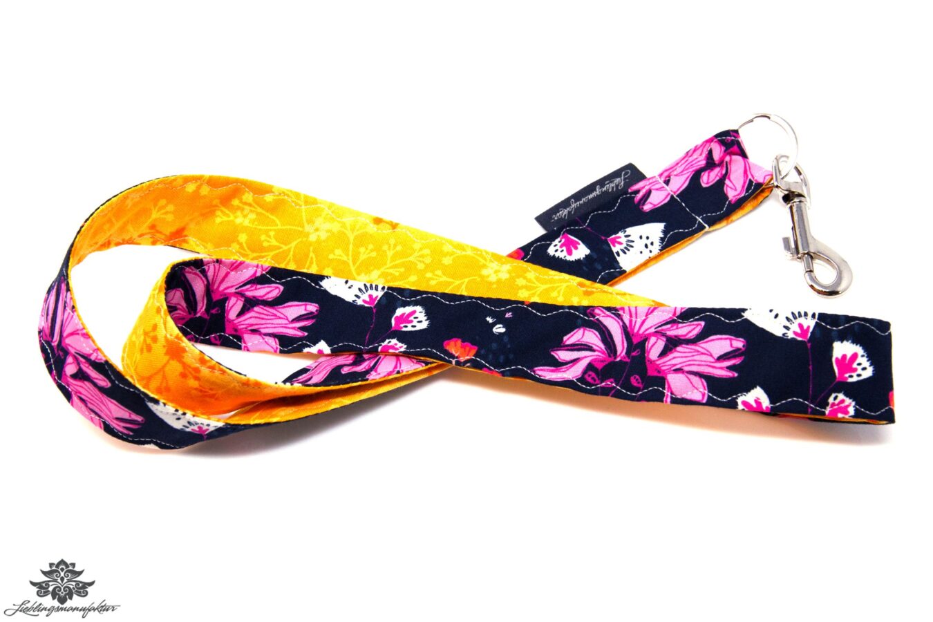 Hochwertiges, robustes Schlüsselband in buntem Design aus zwei verschiedenen Stoffen (100% Baumwolle) – mit Schlüsselring und Karabinerhaken.